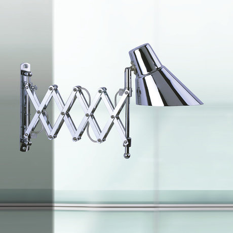 Настенная модель из стали на гибком держателе позволяет легко регулировать уровень освещенности. Незаменимое свойство для тех, кто собирается использовать светильник по назначению, а не в качестве интерьерного аксессуара. Впрочем, и те и другие оценят слегка агрессивный силуэт и хромированную поверхность изделия. E14 220-240V 40W
