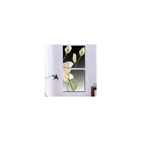 Вертикальный диптих имеет совершенно другую структуру декора, поскольку воспринимается сверху вниз. Поэтому поверхность расположения должна соответствовать композиции картины. С таким нейтральным сюжетом диптиха можно сочетать любую стену.