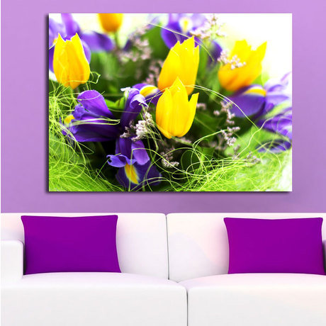 Стоимость доставки товара «Декоративная картина на холсте: Желтые тюльпаны и ирисы» можете уточнить здесь